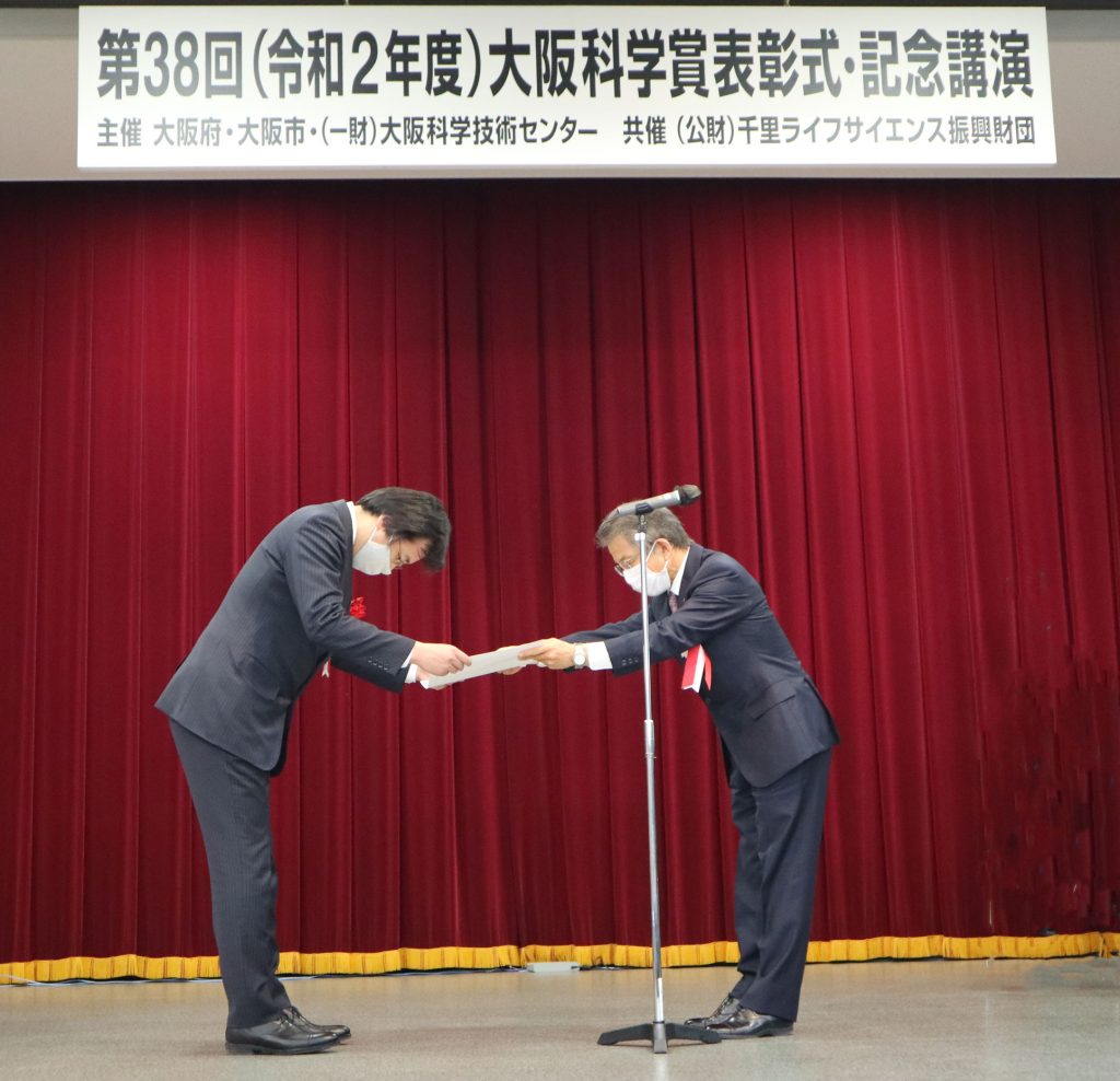 石井 優 教授(免疫細胞生物学)が第38回(令和2年度) 大阪科学賞を受賞しました。11月28日に大阪科学技術センターにて、表彰式・記念講演が行われました。