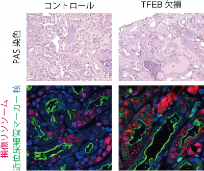 - 傷ついたリソソームの修復には、オートファジー※1やリソソーム生合成を制御する転写因子TFEB(transcription factor EB)※2が活性化することが必須であることを明らかにした。