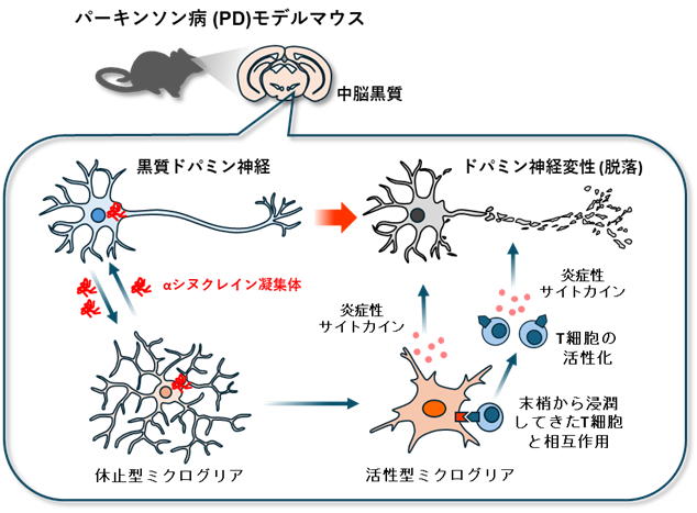 パーキンソン病病態におけるT細胞とミクログリアの影響