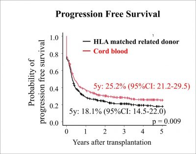 Figure1 : Progression free survival comparing cord blood transplantation and HLA matched related donor transplantation