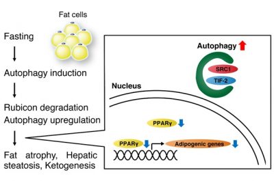 “In control mice, fat loss, hepatic steatosis, and ketonemia were observed under fasting conditions,” says senior author Tamotsu Yoshimori. “Fed RUBCN knockout mice exhibited responses that were similar to those of fasted control mice, while fasted ATG5 mice exhibited reduced fat loss, hepatic steatosis, and ketonemia.”