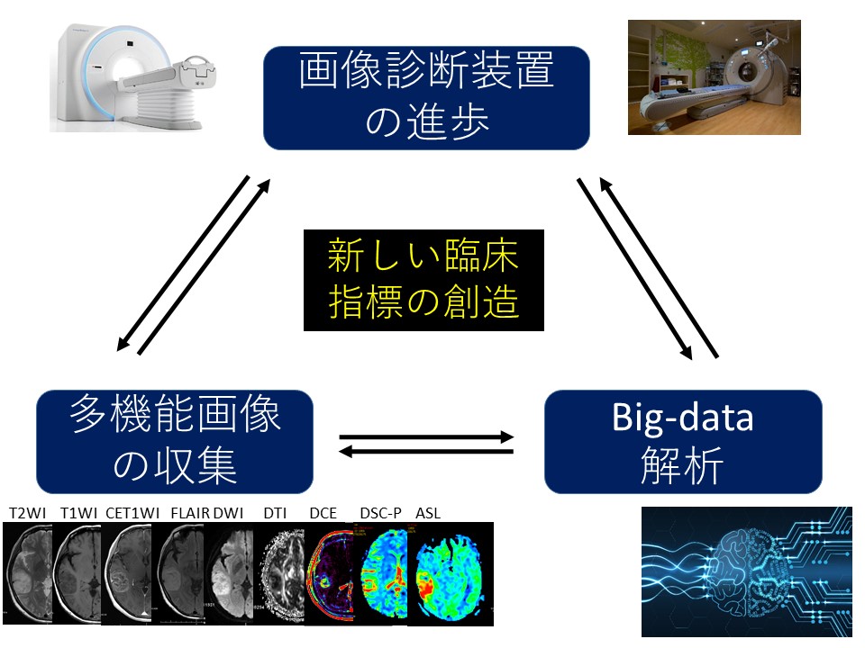 - CT,MRI画像を用いた多機能画像を用いての各種疾患の診断法、治療効果判定法の確立