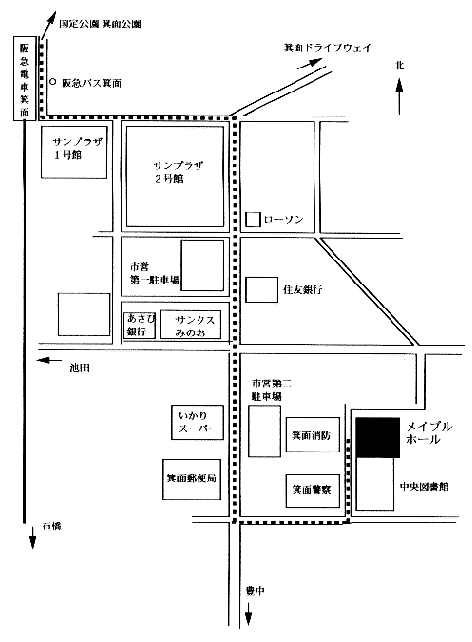 阪急バス「箕面」行き([19],[20])約20分「箕面」下車徒歩約7分