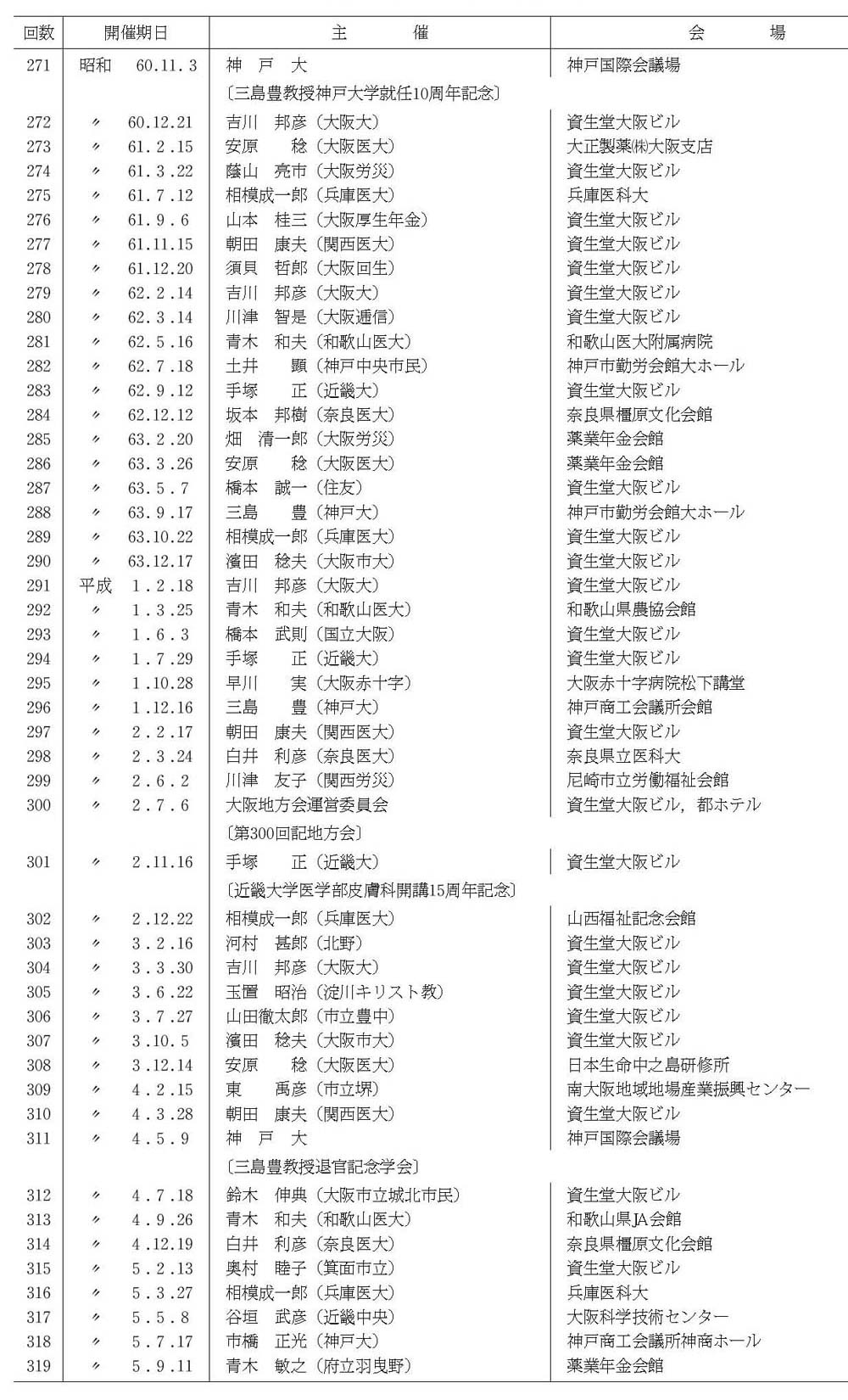 日本皮膚科学会大阪地方会開催一覧