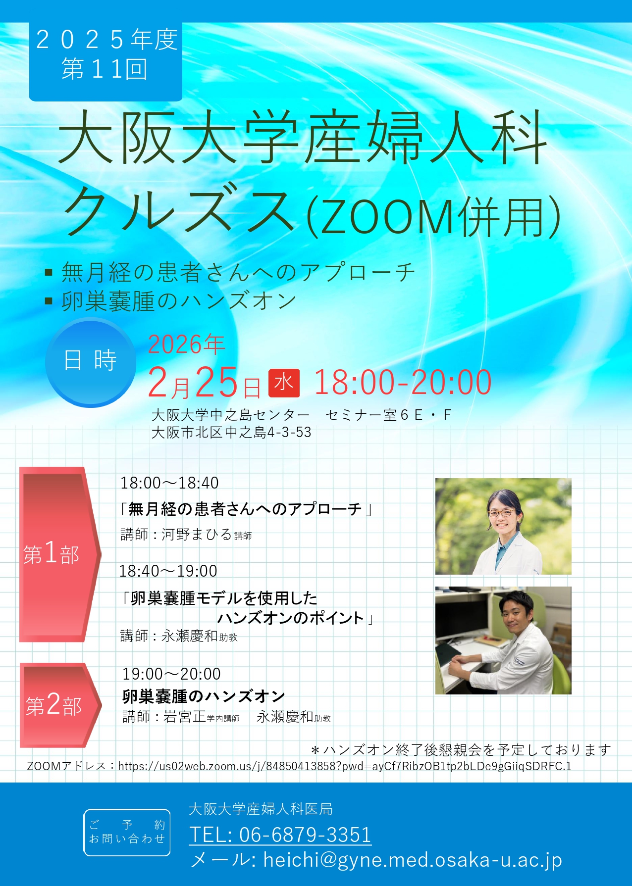 ご不明な点等ございましたら、担当:角田(mamorukakuda@gyne.med.osaka-u.ac.jp)までご連絡いただけますと幸いです。