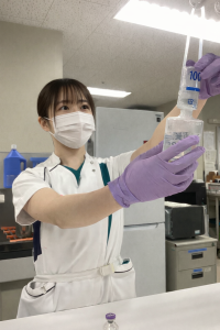 様々な疾患や幅広い年代の患者さんと関わり、より多くのことを学びたいと思ったのが決め手です。また段階別研修やプリセプター制度など、新人看護師に対する教育体制が整っている点にも惹かれました。さらに新人看護師は慣れないことや覚えることが多く不安が大きかったですが、同期が100人以上と多くお互いに支え合いながら安心して成長できる環境だと感じたからです。