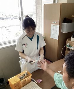 患者さんに『ありがとう』と感謝の言葉を頂いた時や、患者さんの笑顔を見ることができた時です。日々コミュニケーションを取る中で、患者さんの抱えている悩みや様々な思いを知ることができ、患者さんの心の支えとなれることにやりがいを感じます。これからも患者さん一人ひとりに寄り添い、信頼される看護師を目指して頑張りたいと思っています。