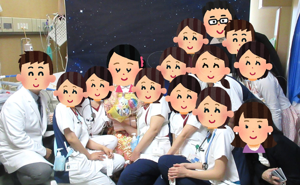 病室が、一日限りの美容院・写真スタジオになりました。ひとつひとつ、願いや希望を叶えて、青空と星空の背景の前で、お祝いの記念写真を撮影しました。撮影チームの皆さん、ご家族と医療スタッフ、みんなの「おめでとう」に包まれて、「実現できて嬉しい」と、晴れやかな笑顔があふれていました。
